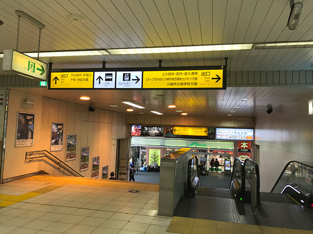 JR南武線武蔵中原駅の改札を出て、エスカレーターを降ります。